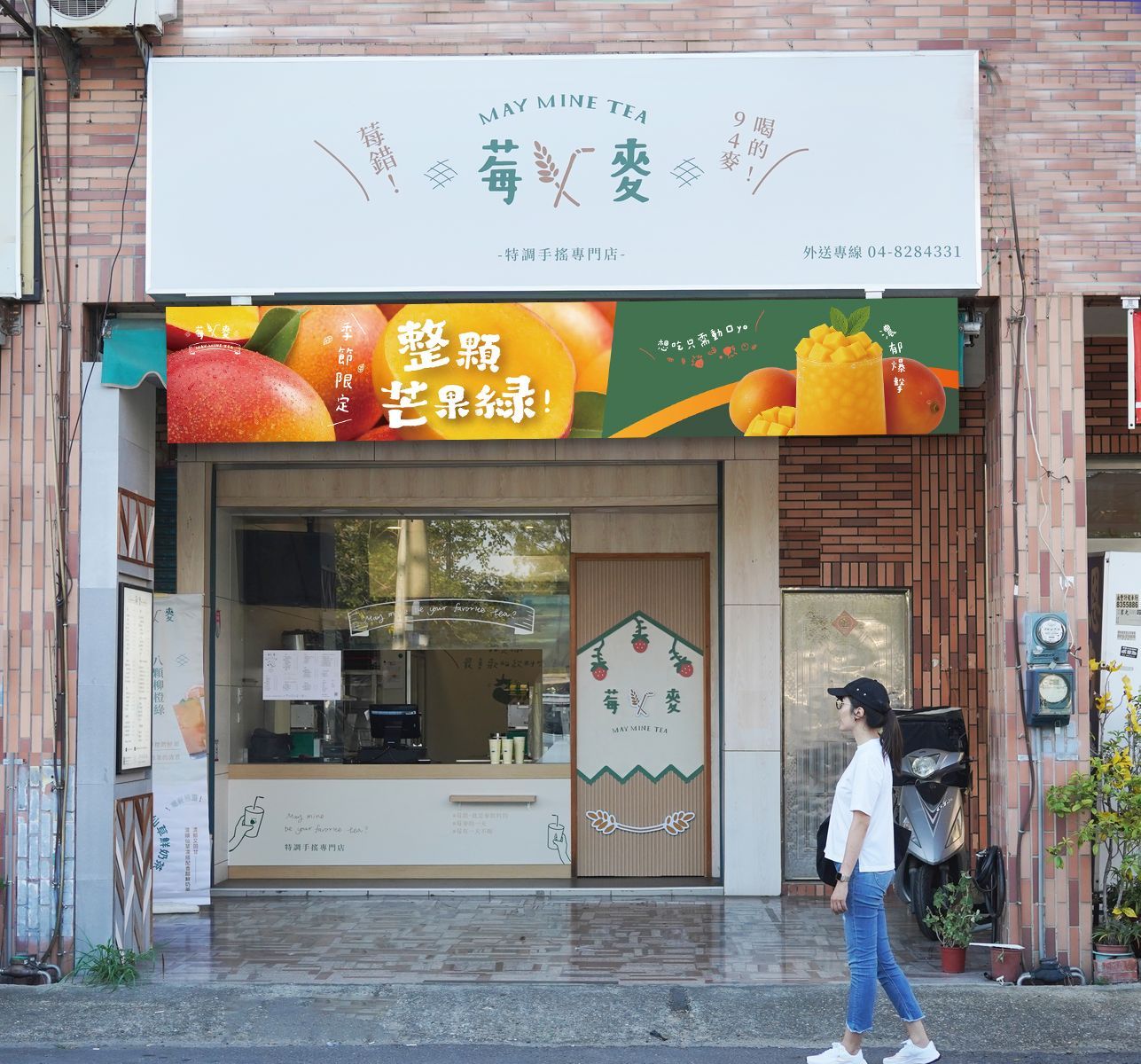 以輕盈且輕鬆的設計語彙,結合品牌詼諧文案,整體門面的留白設計營造出綠意盎然與陽光明媚的輕盈感,明亮清新的意象企圖吸引消費者前來品嘗特調的好滋味。